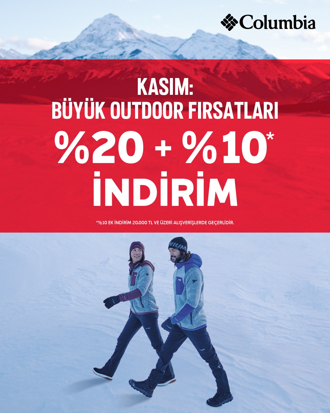 COLUMBIA'DA %20 + Net %10 İNDİRİM! Beklenen Kasım Fırsatı: Tüm indirimlere ek 20.000 TL ve üzeri alışverişlerde %10 İNDİRİM mağazamızda seni bekliyor!