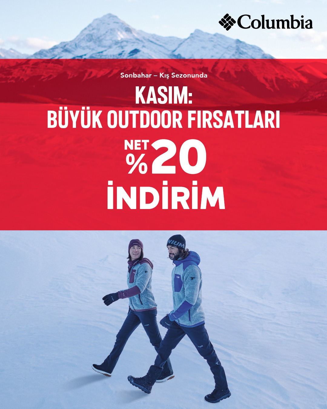 COLUMBIA'DA KASIM: BÜYÜK OUTDOOR FIRSATLARINI KAÇIRMA! Seçili sonbahar kış sezon ürünlerinde geçerli Net %20 indirim mağazamızda seni bekliyor.