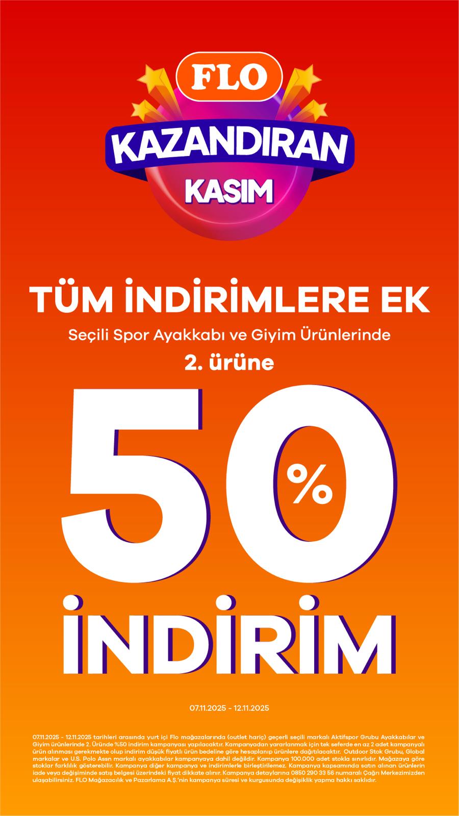 FLO'da Kazandıran Kasım. Tüm indirimlere ek 2. üründe %50 indirim 11 Kasım 2025, 14:35
