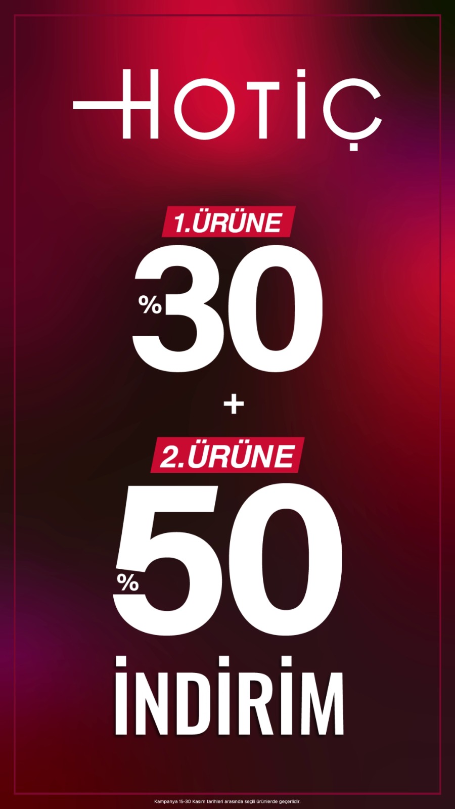 HOTİÇ'DE Efsane Kasım!!! 1. ürüne %30 + 2. Ürüne %50 İNDİRİM! 15 Kasım 2025, 17:58