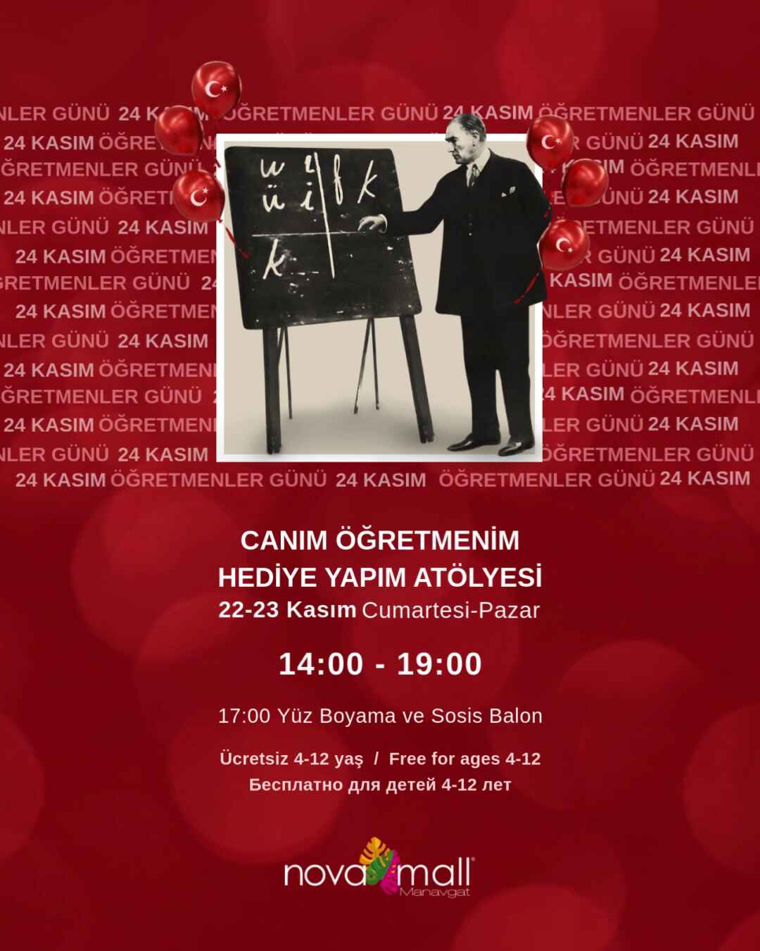 22-23 Kasım • Cumartesi & Pazar14:00 – 19:00 saatleri arasında yapılacak.Çocuklar, Öğretmenler Günü’ne özel kendi hediyelerini hazırlıyor! 17:00 – Yüz Boyama & Sosis Balon AtölyesiRenkli ve eğlenceli anlar minikleri ...