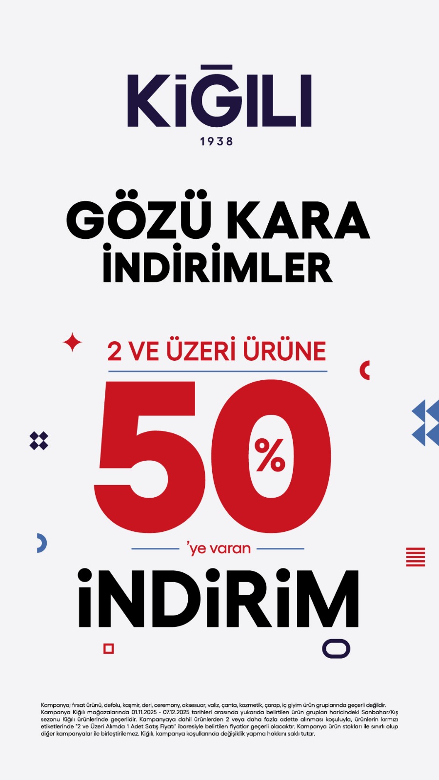 KiĞILI'da gözü kara indirimler. 2 ve Üzeri Ürüne %50'ye varan İNDİRİM. 27 Kasım 2025, 13:58